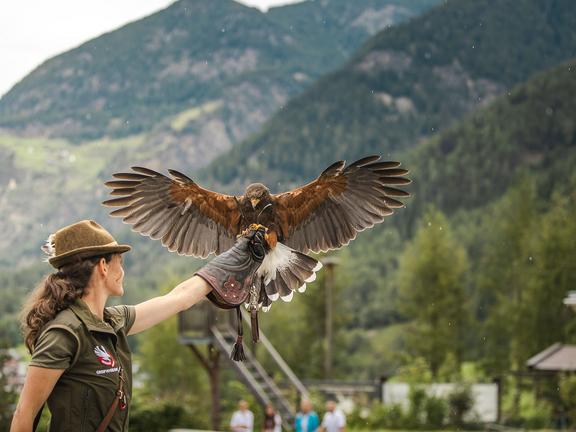 Im Greifvogelpark mit rund 5.000 m² ziehen Adler, Bussarde, Falken und Milane bei täglichen Vorführungen ihre Flugspuren vor der grandiosen Kulisse der Ötztaler Berge. Seltene Vogelarten leben hier in artgerechter Haltung und werden von fachlich geschulten Falknern und Falknerinnen betreut. Die Greifvögel zeigen in atemberaubender Geschwindigkeit ihre Flugkünste: elegante Segelflüge, waghalsige Sturzflüge, rasante Jagdflüge und lautlose Gleitflüge. Ein hautnahes Erlebnis für Jung und Alt. Der Lehrpfad zur Geschichte der Falknerei und der Falknerei-Shop vervollständigen das Angebot.